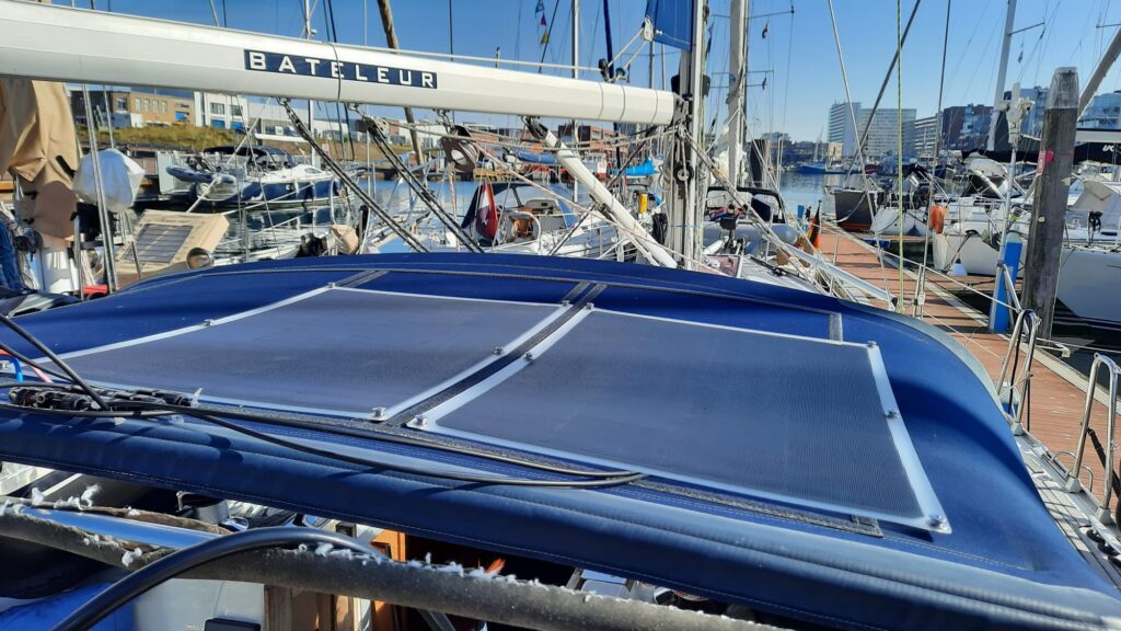 Na een kopje koffie en bakje kwark kan Pieter niet langer wachten, hij wil echt nú zijn flexibele zonnepanelen ophalen. We dubben nog of we gaan lopen of een scooter huren, want het is nog een aardige tippel naar de watersportwinkel. Besluiten toch te gaan lopen met ons luie lichaam 😉. Pieter controleert samen met de medewerker 1 pakket/paneel en dat ziet er goed uit, in totaal 3 panelen van ca 90 cm bij 55 cm. Dat wordt nog een heel gesleep met dat pakket, Pieter vraagt met een gekke bek of ze geen bezorgservice hebben… De medewerker vraagt ons om een moment geduld, hij moet even overleggen met een collega…oké… ja hoor mijnheer, mijn collega moet zo toch op pad met de auto, hij kan u en het pakket wel even naar de haven brengen! WAUW dat is geweldig, daar zijn wij erg blij mee 😇. Bij thuiskomst opent Pieter pakket 1, op het paneel zit een sticker met het serienummer, dit moet worden aangemeld i.v.m. de garantie van 5 jaren, pakket nr 2 zelfde verhaal, pakket nr 3, hum er ontbreekt een sticker en er zitten allemaal krassen op het paneel, krijg nou, het lijkt wel een gebruikt paneel, bellen met de watersportzaak, zij reageren gelukkig heel adequaat, lang verhaal kort morgen kunnen we een nieuw paneel ophalen en de oude inleveren. Wat een gedoe, en we hadden ons nog zo voorgenomen in de winkel alles te controleren. Volgende keer nog beter opletten! Goede nieuws is de panelen leveren veel ampère, we kunnen dus langer zonder walstroom en dat komt het ankeren ten goede.
