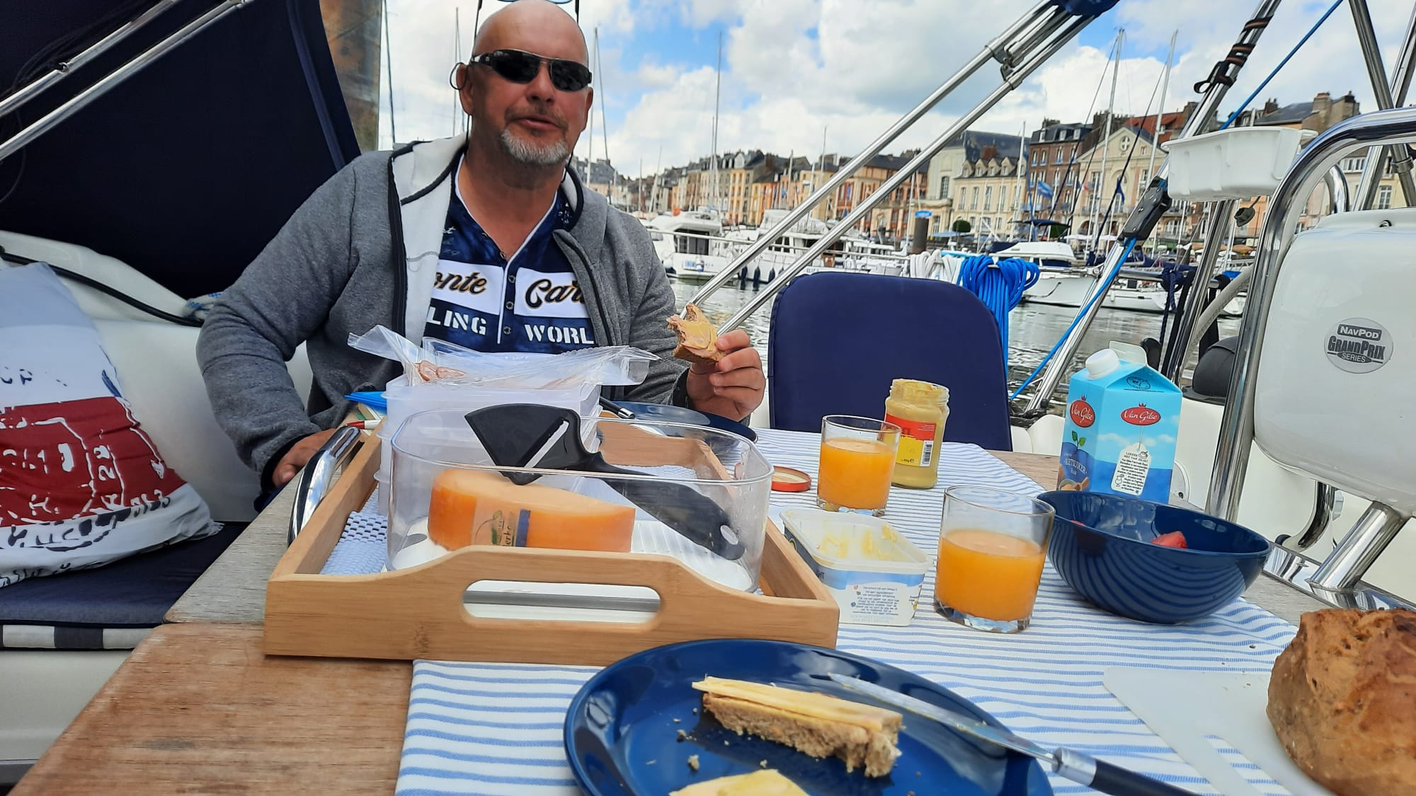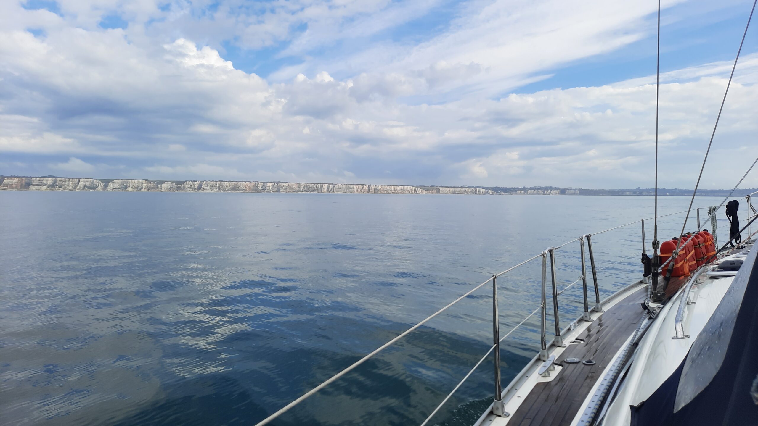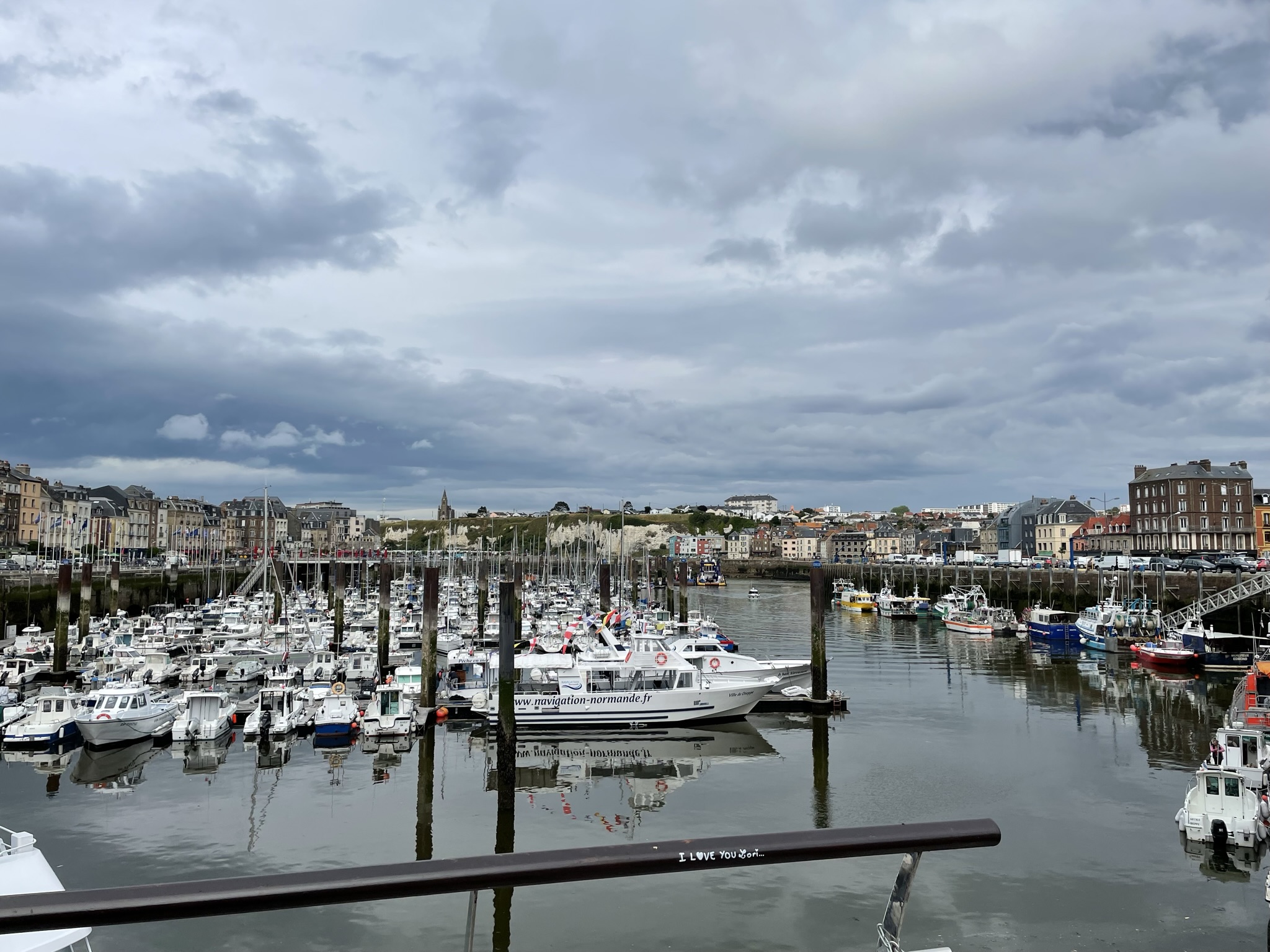 Het is erg rustig op t water, en daardoor niet moeilijk navigeren. Ondertussen vermaken wij ons met het turen naar de krijtrotsen en het spotten van zeehondjes. Regen en zon wisselen zich af en dan rond 19.00 uur bereiken we de haven van Dieppe. Yes we made it! Laat de reis hopelijk de moeite waard zijn đ