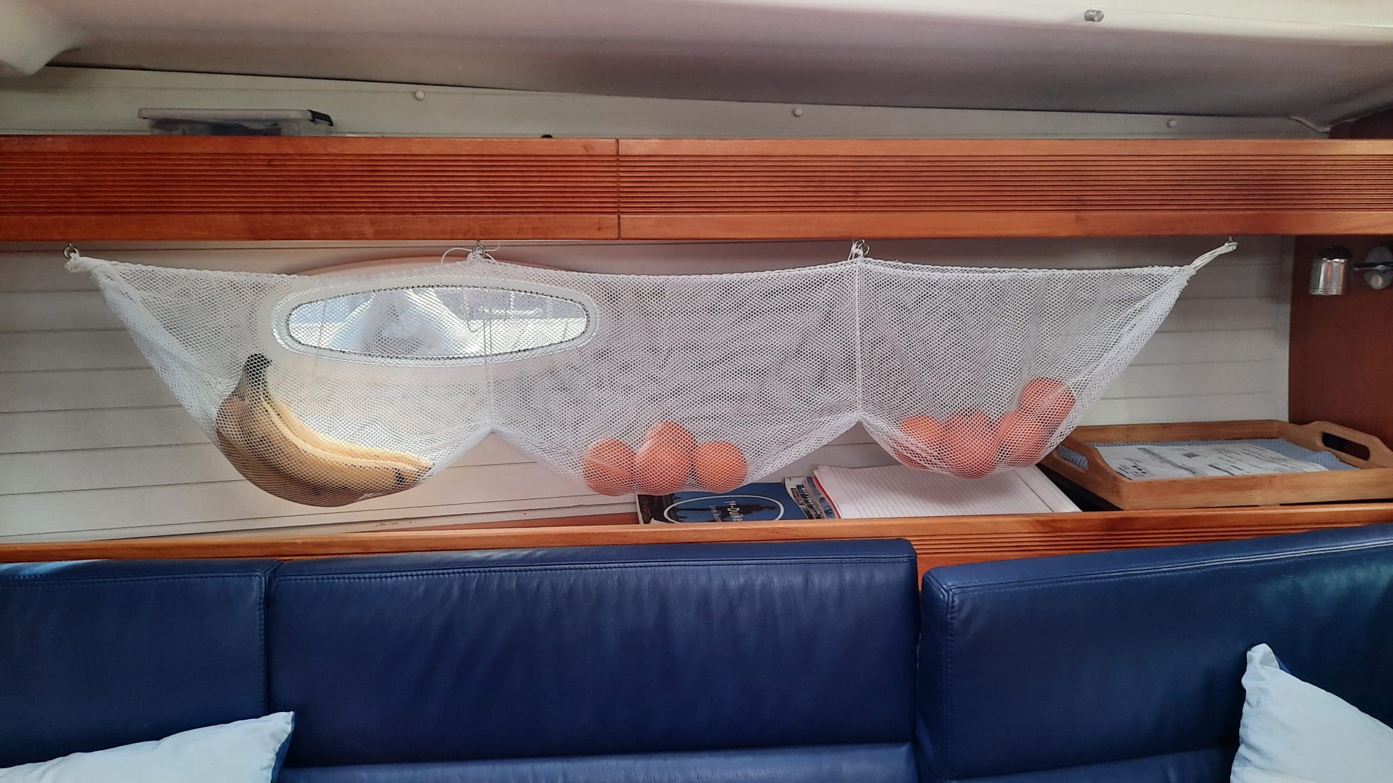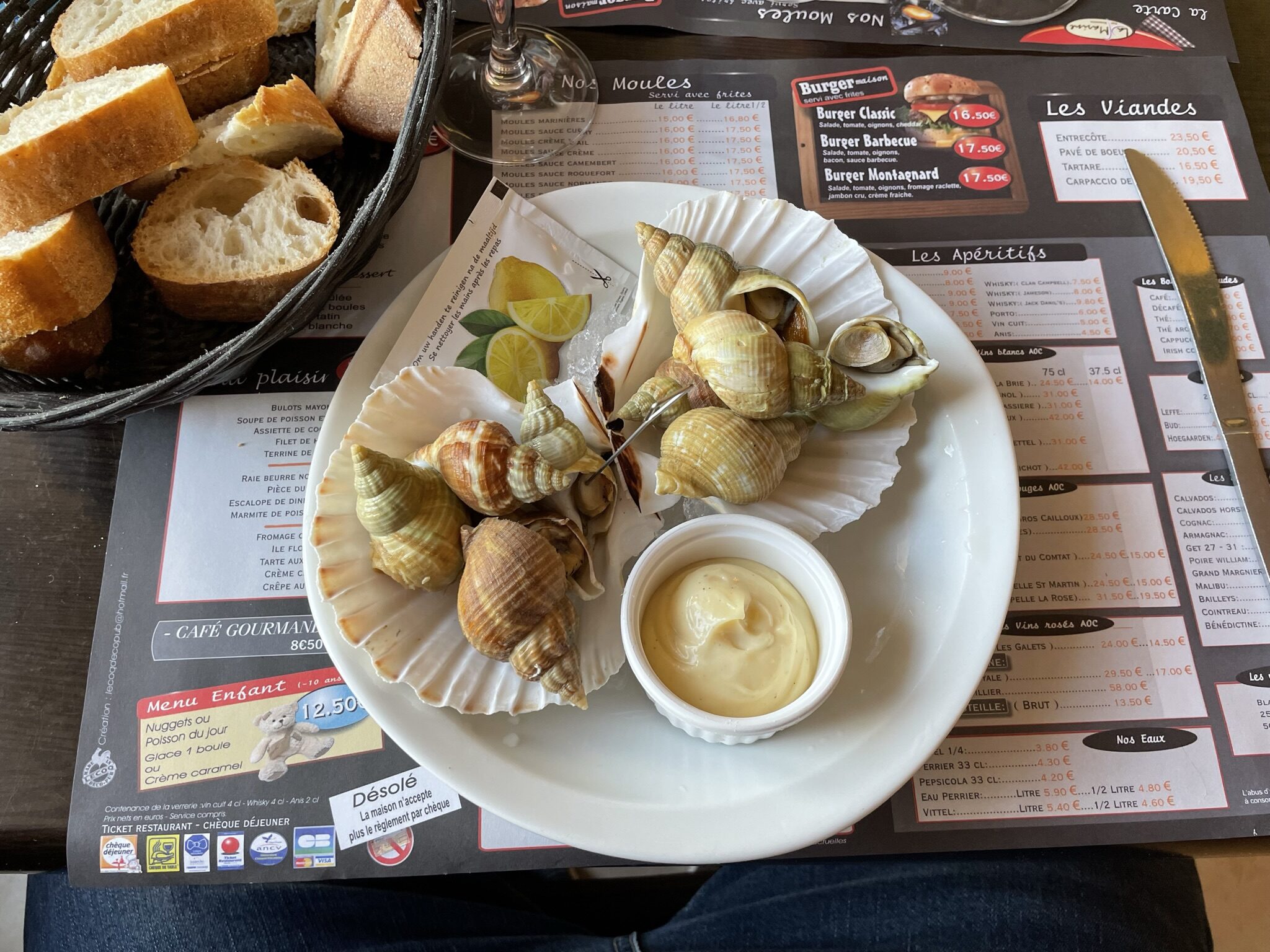 Er is ook markt en we wandelen langs de kraampjes. Naast groente fruit en brood scoort Pieter zelfs 2 ’t-shirts, leuk aandenken. In de middag doen we wat klusjes op de boot (Pieter maakt zelf een fruitnetje, bewonder hieronder het resultaat) en in de avond gaan we uit eten. De slakken laat ik graag aan Pieter over đ