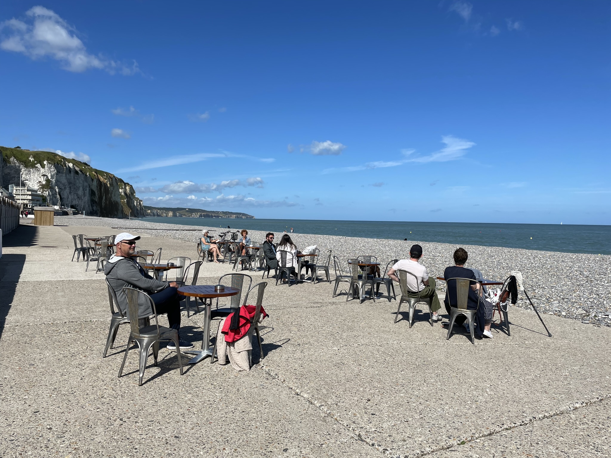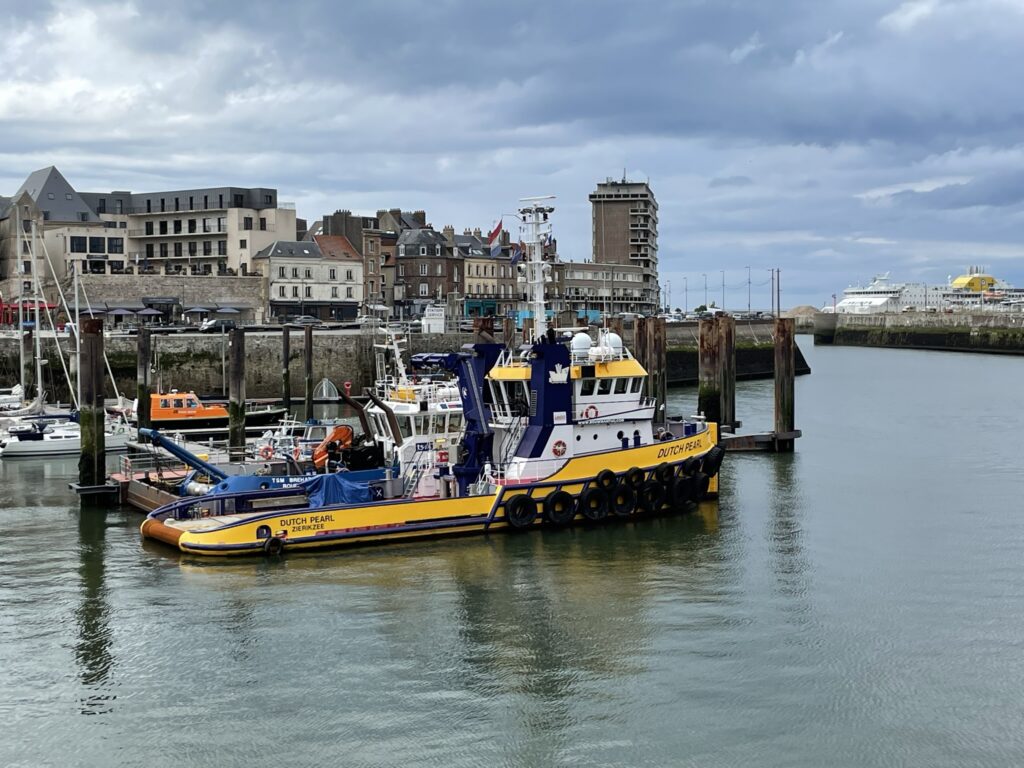 Vrijdag 24 juni we verlaten rond half 9 de haven. Er staat weinig wind en de wind staat voor ons niet gunstig. We proberen wat te kruisen om toch te kunnen zeilen maar na ca 2 uren liggen we nog steeds ter hoogte van de haven, dat schiet niet op en Pieter wordt ongeduldig. Hij is er klaar mee, gooit de boot overstag en zegt dan gaan we maar naar ’t Noorden richting Nieuwpoort. Maar ook dit levert geen verbetering op in knopen. Maar wat is dit nou, we wisten toch dat we moesten motoren richting Dieppe, opper ik. Huppekee en weer overstag richting Dieppe, heel komisch, motor aan en fok in, Dieppe we komen eraan, nog even zeker 8 uren varen op de motor! đ