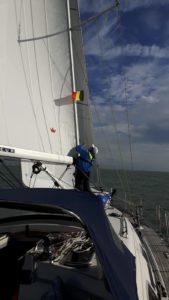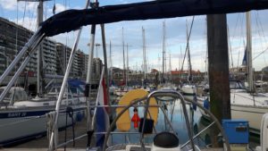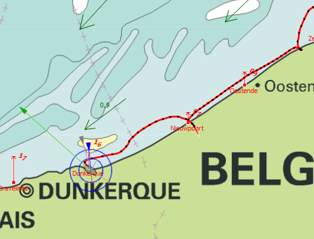 We bereiken iets noordelijker dan Calais de Franse kust en varen al motor-sailing verder richting het noorden naar de Belgische kust waar we omstreeks 15.30 uur Nieuwpoort binnenlopen.