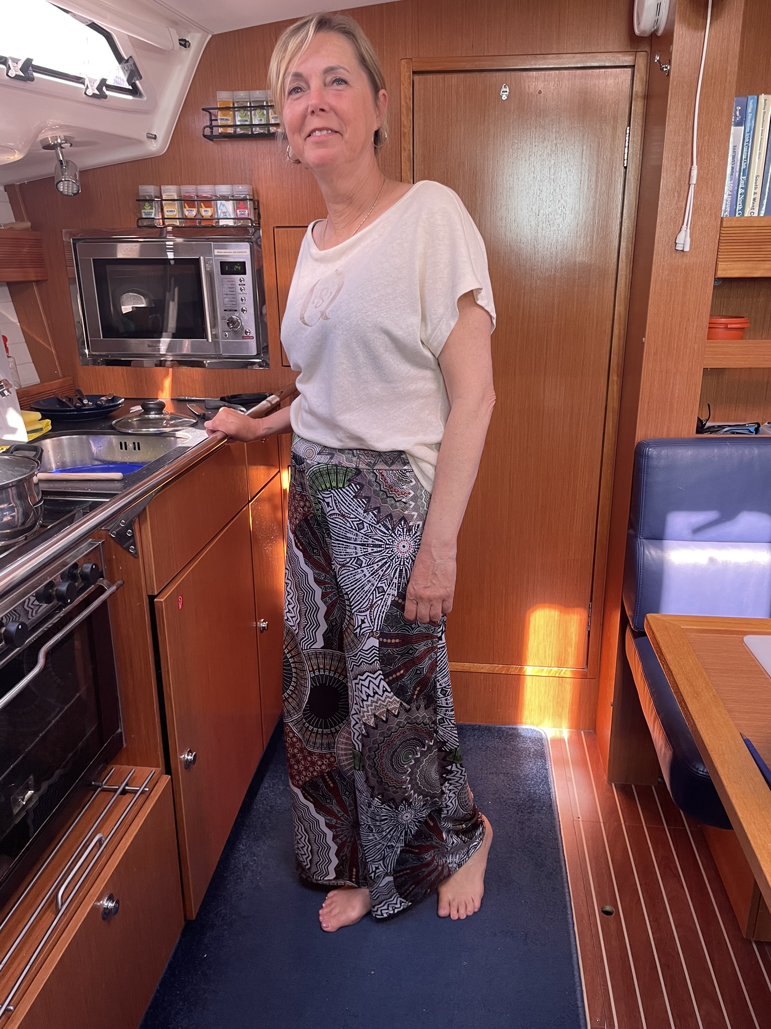 Alles gaat voorspoedig, er is veel scheepvaartverkeer, maar met af en toe wat aanpassen van de snelheid weten we overal tussendoor te komen. Halverwege de TSS tussen de stelsels naar het zuiden – naar het noorden, is er nog een zone waar het verkeer alle kanten op mag. Miranda houdt alles goed in de gaten en controleert ook de AIS gegevens op de plotter en vraagt zich op een moment af waarom twee Engelse SAR boten, vrij dicht bij elkaar, zich in deze zone ophouden en vraagt Pieter mee te kijken. Ja vreemd, maar wij varen daar precies tussendoor, dus niets aan de hand en aan de andere zijde van de TSS varen we dan recht op een Frans Marine schip af, dat komt ook vast wel goed. Koers en snelheid behouden en gaan met die banaan.