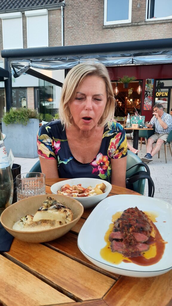De dag na de prik voelen we ons wat loom en afwezig maar daar blijft ’t de rest van de dag ook bij. Wat een geluk! We doen het rustig aan, lopen wat rond in Breskens reserveren een tafeltje voor morgen om de goede afloop te vieren.. (je moet toch wat verzinnen ha ha )