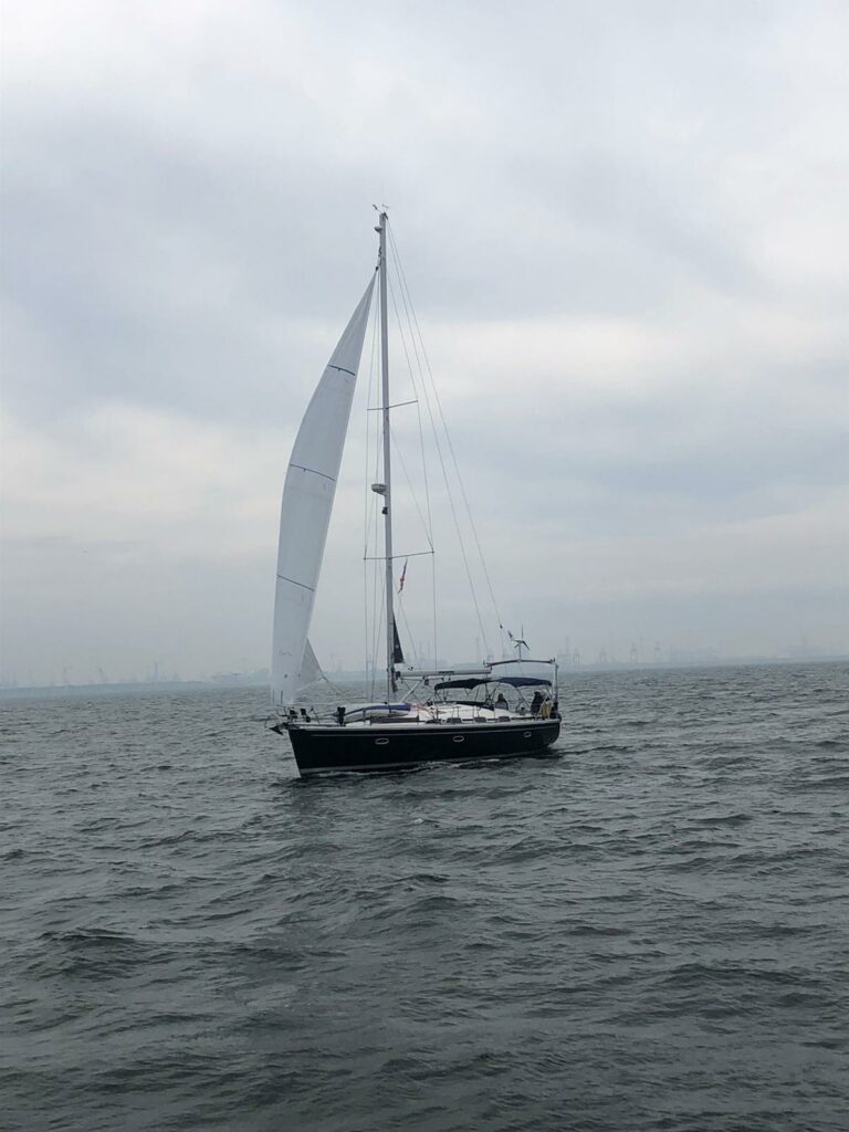 SY Sylvia zeilt samen met ons richting Scheveningen nadat de storm is gaan liggen