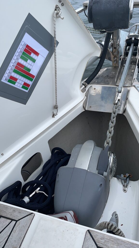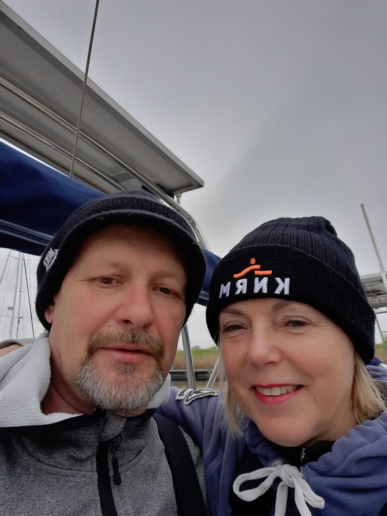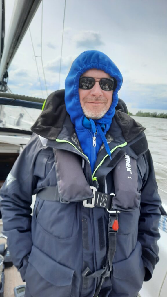 Na de hefbrug bij Dordrecht rond 14.00 uur besluiten we unaniem dat we toch doorkachelen naar Willemstad, met windkrachtje 4 en halve bevolking goed te doen. Wel zou de temperatuur paar graadjes meer mogen zijn. Dit ziet er in de praktijk dan zo uit, laag over laag over laag 🙂 en natuurlijk zeillaarzen eronder.