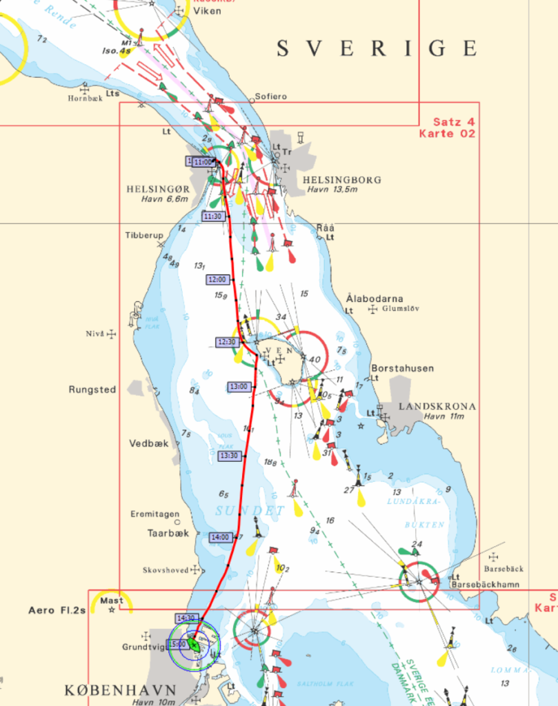 We vertrekken zondagochtend vroeg uit Helsingor, op weg naar het eiland Ven (Zweden). Het is een klein eiland met 3 haventjes waarvan er 1, aan de westkant, voor ons geschikt is om aan te lopen. Zoals gezegd een kleine haven met een beperkt aantal ligplaatsen. Wanneer wij aankomen blijkt de haven vol te liggen, de enige ligplaats wordt net voor onze neus ingenomen door een groot motorjacht. Helaas moeten we dit eiland overslaan en verder koers zetten richting Kopenhagen.