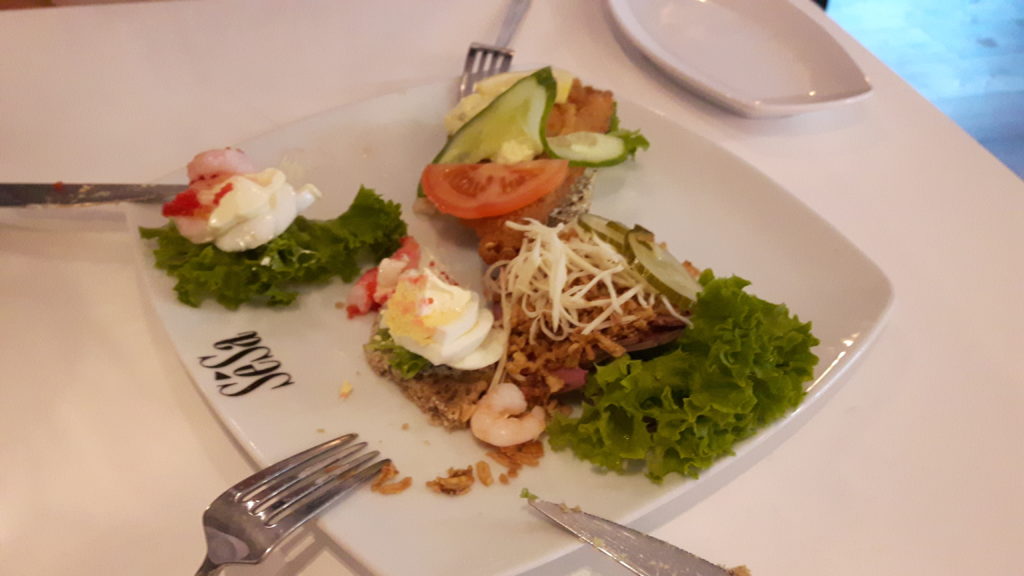 Op een terrasje moeten we toch een keer het bekende smorrebrod proberen. Pieter houdt helemaal niet van roggebrood, maar eerlijk gezegd smaken deze hapjes uitstekend. En met al het beleg wat erop zit kan je eigenlijk alles lekker maken.