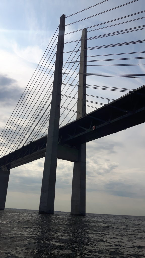 Vandaag gaat het dan écht gebeuren. We gaan het pronkstuk de Sontbrug onderdoor. De in totaal 16 km lange verbinding tussen Denemarken en Zweden over de zeestraat de Sont. Er loopt een spoorlijn en een weg over. Een enkele ticket per auto kost ca € 37,-.