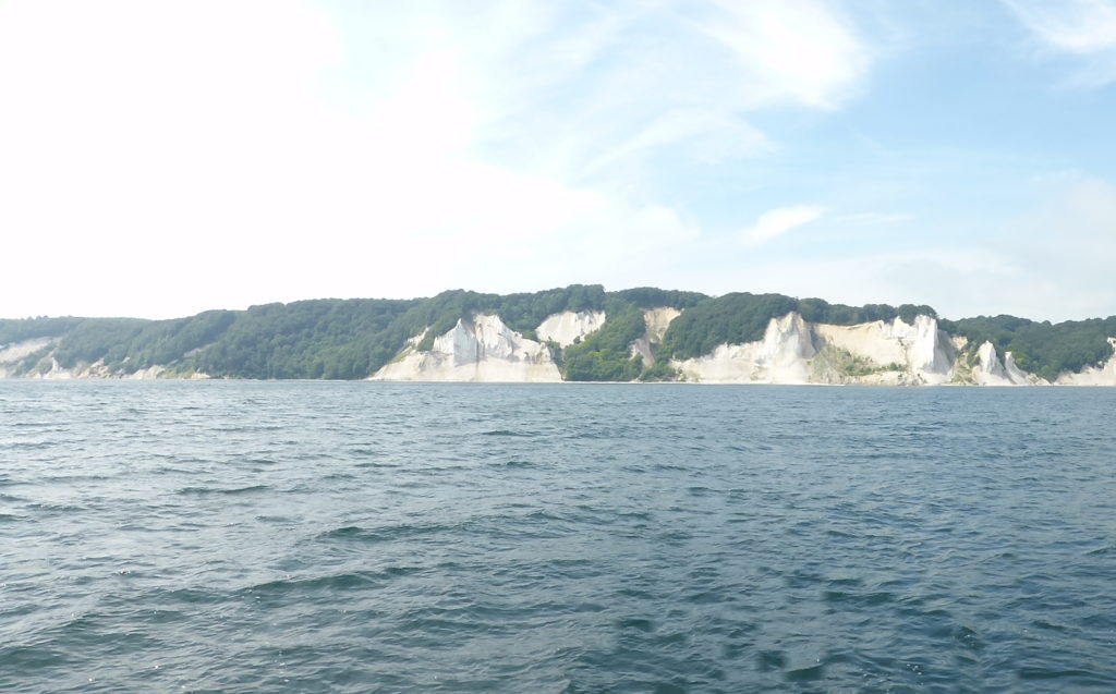 Ook wij gaan de lijnen losgooien en rond half 9 zitten we op het water richting Klintholm, wederom een klein stukje zeilen. De Bateleur stelt ons niet teleur en loopt lekker door het water. We varen niet ver uit de kust langs schitterende krijtrotsen.