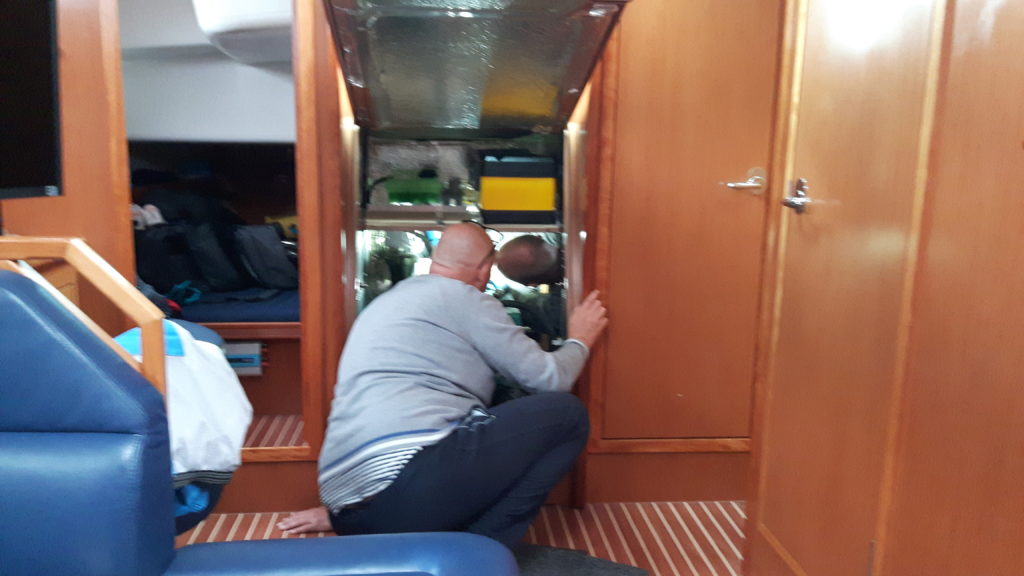 Om 08.30 stapt de monteur van Volvo Penta aan boord, nadat de motor gestart is en hij enige metingen heeft verricht komt ook hij tot de conclusie dat de spanningsregelaar van de dynamo defect moet zijn. met twee paar handen is de nieuwe dynamo snel geplaatst. Proefdraaien en dan blijkt…….. het euvel niet verholpen te zijn. O jee wat nu, nog maar eens wat metingen verrichten.