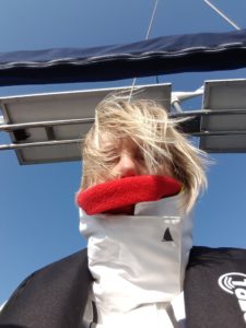 We slippen met gemak uit de box, de wind helpt ons hierbij. De wind is onze vriend vandaag. Het grootste stuk kunnen we zeilend afleggen. We moeten zelfs de zeilen reven (kleiner maken). Zo op de open zee is even wennen, Miranda voelt zich niet helemaal top. Maar van Pieter moet zij wel blijven eten en drinken. En het is me toch een partij koud!!! 4 lagen en zelfs dan is het nog koud. Maar niet klagen, we zeilen gemiddeld 8 knopen en dat is niet onverdienstelijk.