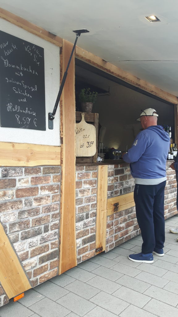 Zaterdag en zondag is er in Laboe een markt voor handenarbeid waar wij een kijkje gaan nemen, kraampjes ingepakt in het plastic tegen het gure weer. Toch wagen wij ons op een terrasje voor een heerlijke flamküche met een glaasje droge wijn. Nou ja glaasje, zeg maar glas en dat ene glas doet ons het slechte weer vergeten 🙂