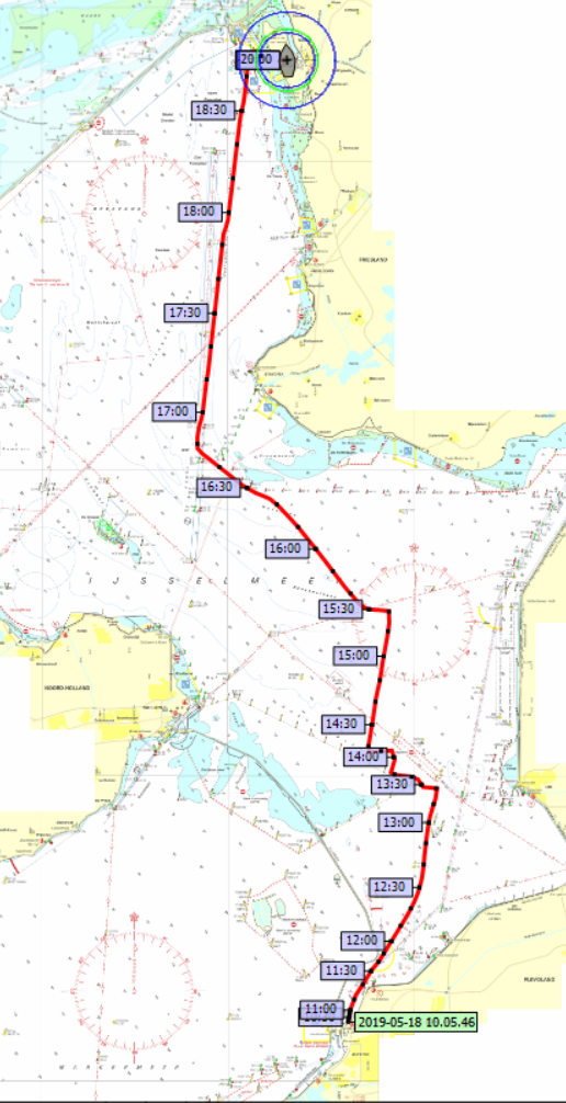 We kunnen allebei de theorie over boeien en hun verlichting ophalen en deze in de praktijk brengen. ISO 8 seconden, ISO 4 seconden, flashing, very quick flashing etc. En dan naar de horizon kijkend je weg weten te vinden. Gelukkig, tevens met behulp van onze elektronische plotter, vinden wij onze weg in het donker over de Waddenzee. Voor de Lorentzsluizen liggen we nog een klein uurtje in afwachting van het daglicht, om daarna door te varen naar Marina Makkum. Na 22 uur liggen we weer afgemeerd en doodmoe maar voldaan in ons bedje.