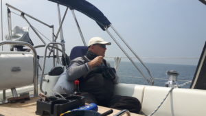 Om het tij bij Den Helder tot aan de Lorentzsluizen (Kornwerd) in ons voordeel mee te willen hebben, zullen we tussen 22.00 en 23.00 uur bij het “Schulpengat” (aanloop bij Den Helder) moeten aankomen. Vertrektijd wordt daardoor bepaald op 07.00 uur uit Cadzand.We starten met een lekker windje en af en toe kan de motor uit, maar om ons tijdschema te halen is er te weinig wind en is het motoren onvermijdelijk.